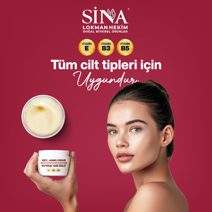 Sina Lokman Hekim’in özenle geliştirdiği Kuyruk Yağı Özlü Yaşlanma Karşıtı Gece Bakım Kremi, cilt bakımında geleneksel bilgi birikimini modern formülasyonla buluşturur. İçeriğindeki saf kuyruk yağına ek olarak Vitamin E, B3 ve B5 gibi güçlü destekleyicilerle zenginleştirilmiş bu özel krem, cildin gece boyunca yenilenmesini ve derinlemesine onarılmasını destekler.